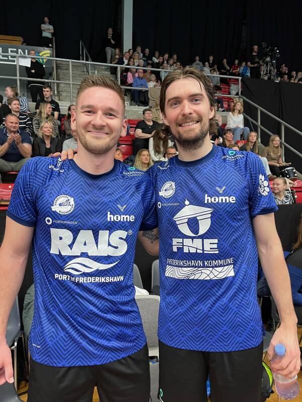 Mathias Christiansen (t.h.) ses her sammen med Zvonimir Durkinjak efter DM-finalen i 2023, hvor Mathias Christiansen senest var i aktion for VEB.